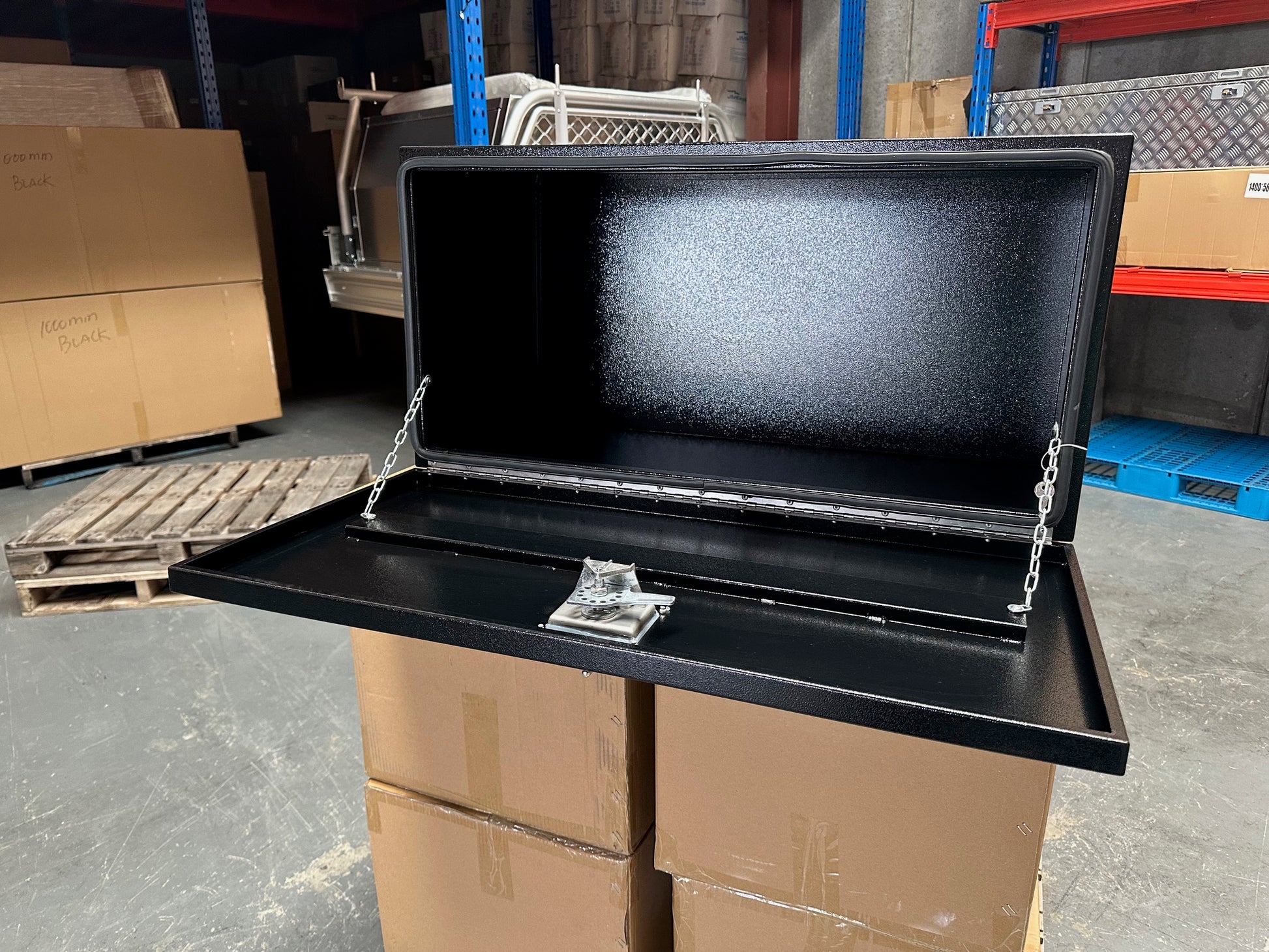 910mm * 455mm * 455mm Truck Under Tray Toolbox Black Steel